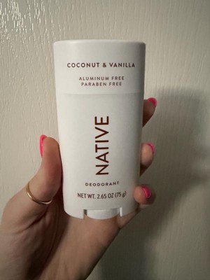 [This review was collected as part of a promotion.] I absolutely loved this deodorant from Native. What I like most is the coconut and vanilla scent its sweet but not cloying. The texture is very creamy it glides on easily and doesn't leave behind that sticky feeling. Plus knowing that it's aluminum free gives me great peace of mind. Highly recommended!