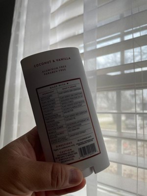 [This review was collected as part of a promotion.] I really like this deodorant. The coconut and vanilla scent is soft and pleasant, not too strong. It keeps me feeling fresh throughout the day and feels gentle on my skin