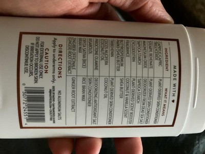 [This review was collected as part of a promotion.] At first I really liked it. The scent was amazing! It truly smells like coconut and vanilla like it claims! And I love that it’s aluminum free! But it didn’t last as long as some of my other go to deodorants so I probably wouldn’t buy this again.