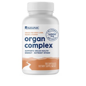 NativePath Organ Complex is a premium blend of grass-fed beef liver, heart, and kidney, freeze-dried to deliver nature's most potent source of bioavailable vitamins A, D, E, and K2, along with essential minerals and nutrients. Simply take six capsules daily with a fat-containing meal for optimal nutrient absorption. Each bottle of NativePath Organ Complex contains 180 easy-to-swallow-capsules. For ultimate quality assurance, every batch undergoes rigorous third-party testing and is manufactured in a certified GMP facility in the United States, ensuring exceptional purity and potency in every serving.
