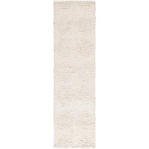 Elevate your hallway or narrow space with this exquisite runner rug. Sized at 2 feet 3 inches by 8 feet, this geometric beauty adds contemporary charm to any setting. The bleach and ivory tones offer an inviting and serene backdrop, effortlessly complementing various decor styles. Crafted with a hand loomed technique, this rug combines 90 percent jute with 10 percent cotton, providing a natural and earthy texture. Originating from India, its quality craftsmanship shines through. The half-inch height offers a sleek profile while maintaining comfort underfoot. Perfect for adding a touch of elegance to your home, this runner is not only a functional addition but also a piece of art for your floor. Rediscover simplicity and sophistication with this uniquely designed piece.