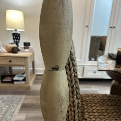 The Polyresin Floor Lamp is beautiful and will surely elevate your home decor. It’s crafted with high quality resin, designed in an elegant farmhouse style and extremely durable. I love the natural wood finish and the brightness it provides for my family room. The spindle and wood technique along with the lamp shade adds a classic touch to this piece. The base is somewhat heavy but can easily be moved to any room of your choice.