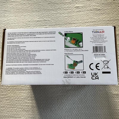 This is such a cute little kit for kids! We have a “capture and release” rule with this toy and my son loves it! He loves to pick up the little critters with the big vacuum and put them in the container. He watches them in their “habitat” for a few minutes and we let them go. He can do this all day long! Genius product!