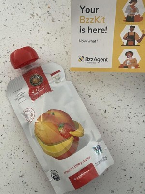 [This review was collected as part of a promotion.] I received this product from bzzagent for free in exchange for my honest opinion. I love the convenient packaging. Easy to pack for on the go. The ingredient list is clean and simple. A plus that it is organic. I tried it as well as my child. It's smooth with a very faint texture from the strawberry seeds. It tastes like bananas with a hint of peach and strawberry flavor. Overall, it is a great product that I'd purchase in the future.