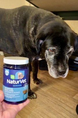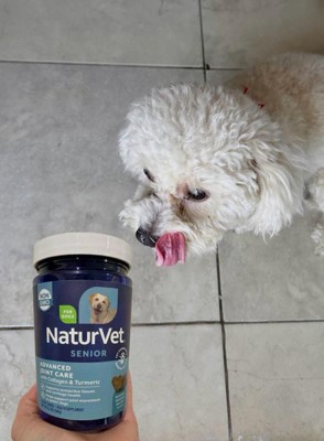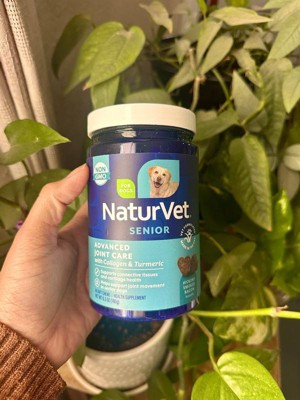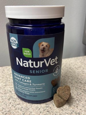 [This review was collected as part of a promotion.] So far, the NaturVet Advanced Joint Supplements have worked well for my senior dog. After several weeks of use I’ve noticed that his mobility has improved, so you do have to be consistent. He’s a little dog and the chews are a bit too big and hard for him, so I have to crumble them and add a little water, but he loves the flavor! I didn’t notice any negative side effects.