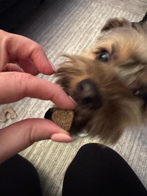 [This review was collected as part of a promotion.] My dogs were so excited to try these and are even more excited when I open them now! They must taste good! I think it is cute that they are heart shaped. My bigger dog gets there a day and the littler one gets two. I haven’t noticed any negative side effects and it’s too soon to tell if it will make a difference for them. For now, we will keep using them!