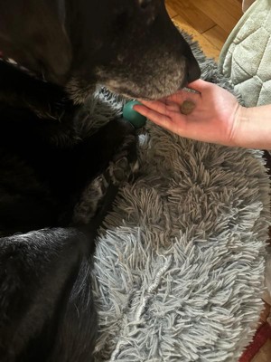 [This review was collected as part of a promotion.] My senior dog is usually hesitant and stubborn when it comes to taking medicine/supplements and requires some form of motivation like food. However, she loved these right out of the container - no tricks needed. I set them in front of her and she eats them right away every time. They are adorably shaped like hearts and have a powdery coating to them. They are easy to give (like treats) and perfectly sized. She is a larger dog so she got 4-5 daily. It does say to double the amount for the first 3 weeks which seemed excessive and caused us to go through the container really fast. She didn’t experience any negative side effects from these supplements and almost seemed to have more of a pep in her step.