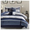 [This review was collected as part of a promotion.] This 7 Piece Comforter Set is beautiful! It comes with 3 decorative pillows, 2 shams, bed skirt and a really nice comforter. It’s machine washable, with a striped design. I love the textures on it and it fits perfectly on my bed. I would recommend this.