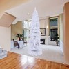 This NAYSAYE 7.5FT White Slim Artificial Christmas Tree brings a modern and elegant look to your holiday space. The slim pencil shape fits perfectly in narrow corners or apartments while still offering a full festive presence. With 1000 dense branch tips it creates a lush lifelike effect. Crafted from durable flame-retardant PVC this tree ensures safety and lasting use. The sturdy foldable metal stand adds reliable support and easy storage. Simple to assemble in just three steps it makes holiday decorating effortless and joyful.