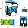 NAYSAYE Collapsible Wagon 140L Folding Utility Cart with Canopy Brake Wheels Cooler Bag for Beach Camping Shopping, Blue and Green, 30.71"*23.23"*45"