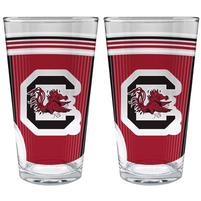 This 2pc Pint glass contains 2 - 16 fluid ounce Pint glasses. Made of 100% glass, these pint glasses feature 360 high definition team graphics. Not dishwasher safe due to graphics, but should be hand washed. A great way to share your team spirit with a friend or loved one on game day.