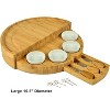 - One of a kind, patented Premium Bamboo cheese board with four (4) ceramic ramekins and three (3) stainless steel and bamboo cheese tools.