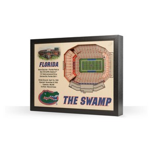 The Florida Gators StadiumView Wall Art 3-D Stadium Replica of Ben Hill Griffin Stadium is hand crafted in the USA of layered white birch, three inches deep, finished with a frame, and ready for hanging. It is officially licensed for use by StadiumViews, a YouTheFan brand. The best stadium view is a StadiumView!