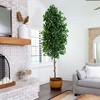 When you're looking for a soft touch, you can't go wrong with an artificial Ficus tree. Inspired by nature, its light and airy leaves add color without being too overbearing. Crafted from high-quality materials by horticulturists, you can bend the branches for a custom experience. Standing 10' from a nursery planter, it's the perfect addition to a space with tall ceilings. Add to a grand room, entryway or living room.