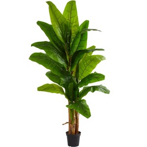 Let the lush green leaves of this artificial banana tree bring the tropical warmth into your kitchen and dining room. The strong center trunk and large leaves are so realistic they are nearly indistinguishable from the real thing! It's also a great choice to add some island flair to your kitchen countertop, island, or bar.