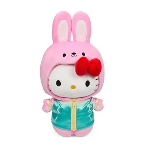 Hop to it with the Hello Kitty® Year of the Rabbit Plush inspired by the Chinese Zodiac. The sweet icon is all ears and dressed to impress in a removable Hello Kitty Year of the Rabbit satin jacket with rabbit hood and back graphics. Made of premium materials, this pretty, pastel plush from Kidrobot measures 13” and is the perfect way to show somebunny you care!