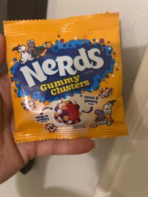 - NERDS GUMMY CLUSTERS: Classic, crunchy NERDS candies heaped on a red gummy candy center to make tasty bite-sized clusters too fun for words