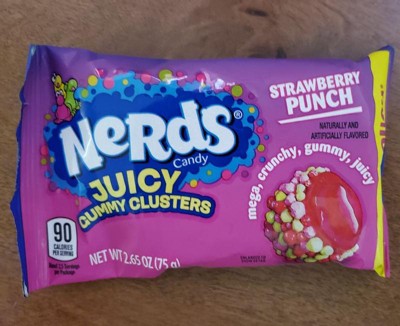 - CRUNCHY, GUMMY AND JUICY CANDY: NERDS Juicy Gummy Clusters is a Strawberry Punch flavored candy in a 4.5 oz bag