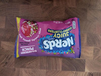 These tasty treats are currently my daughter's favorite so there are bags all over the house. If you're a fan of the original nerds in the tiny boxes these are just for you. Imagine the nerds now wrapped around a gummy center. Strawberry flavored and mushy with a crunch. Tart then sweet. Interestingly satisfying. I get her obsession.