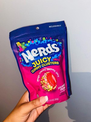 These are very good so don't let the 3 stars fool you. I give it three stars because I feel like they are labeling these as "juicy" but they really just taste like a bigger version of the normal Nerd Gummy Clusters! These are very sweet and have a crunchy but chewy texture. A couple of these is plenty enough for a serving! I feel like I can't eat a lot of these or I get overwhelmed! These have a very strong/ sour strawberry punch flavor! If you love sweet, sour, chewy candies, I would reach for these! 🍓