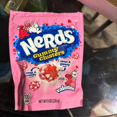 - A TWIST ON A FAVORITE: NERDS Valentine Gummy Clusters are packed with the tangy, crunchy NERDS everyone loves in a whole new way! Tangy, crunchy, sweet, and gummy all come together in this sensational snack.