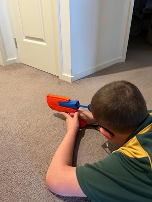 [This review was collected as part of a promotion.] It’s smaller than most nerf guns and would be easy to use for beginners as it’s compact and light weight while still being durable. Great stocking filler!