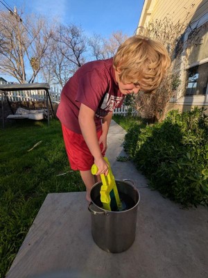 [This review was collected as part of a promotion.] This water gun states easy fill by just dunking it in water, it did take some time to fill it up this way. It can shoot water about 15 ft. The trigger was easy to press and it’s not too heavy so a small child would be able to hold it. I think kids would enjoy playing with it. My kids had fun watering the plants with it.
