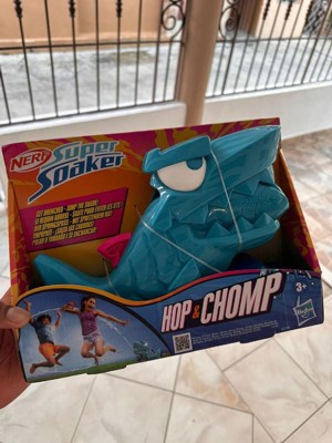 [This review was collected as part of a promotion.] The Nerf Super Soaker Hop and Chomp is a fun, kid friendly water blaster with a unique action design instead of a traditional trigger. It’s easy to ise, light weight and great for kids. However, it doesen’t shoot very far and needs to refills frequently.