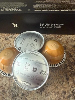 - GOLDEN CARAMEL COFFEE BREWS 7.77 FL. OZ.: These Nespresso Vertuo coffee pods provide you with a 7.77 fl. oz. serving of coffee which is perfect for a longer drinking experience.