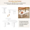 - This nesting coffee table set comprises a large, design-conscious coffee table featuring a cloud-shaped tabletop, complemented by a circular, sleek side table. Both tables boast rounded edges and sturdy cylindrical legs. The unique design not only enhances the elegance of your home but also harmoniously blends with a variety of interior decorative styles.