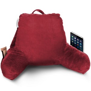Nestl Memory Foam Reading Pillow for Kids, Small Reading & Bed Rest Pillow, Red Back Pillow with Pockets
