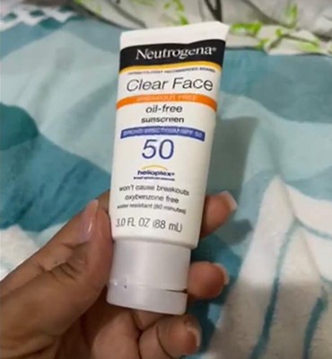 Experience superior sun protection with Neutrogena's Clear Face Sunscreen SPF 50, with UVA/UVB sun protection, designed specifically for oily and acne-prone skin. This lightweight, matte sunscreen for face offers Broad Spectrum SPF 50 protection against both skin-aging UVA and skin-burning UVB rays. Formulated with Helioplex Technology, this facial sunscreen is oxybenzone-free, oil-free, and fragrance-free, ensuring it won't cause breakouts. Its water-light texture provides a weightless, matte finish, making it an ideal face SPF for daily use. Neutrogena Sunscreen is water-resistant for up to 80 minutes, apply this dermatologist-tested face sunscreen before sun exposure to keep your skin protected during outdoor activities like gardening, hiking and biking. Regular use, as directed with other sun protection measures, can help decrease the risk of skin cancer and early skin aging. Enjoy the outdoors with confidence using Neutrogena's Clear Face Sunscreen for oily skin.