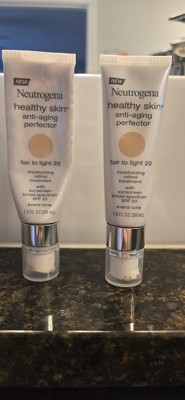 Use Neutrogena Healthy Skin Anti-Aging Perfector Tinted Facial Moisturizer with SPF 20 sunscreen to help reduce the appearance of fine lines. This all-in-one daily moisturizer combines the anti-aging properties of retinol with an SPF 20 moisturizer to offer blendable sheer coverage that helps even tone and smooth skin's texture while protecting against skin-damaging sunrays. This tinted moisturizer is enriched with clinically proven retinol treatment as well as vitamins and antioxidants to fight the appearance of wrinkles even after you take it off. Neutrogena Healthy Skin Anti-Aging Perfector SPF 20 works across skin tones for a natural, dewy finish with sheer coverage.