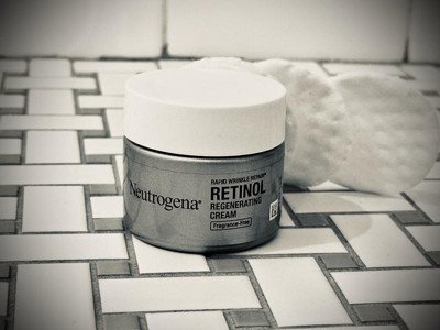Get visible results with Neutrogena Rapid Wrinkle Repair Retinol Regenerating Cream. This face & neck cream helps fade the look of deep wrinkles, including forehead and cheek wrinkles. The fragrance free moisturizing cream delivers retinol, a dermatologist-proven form of vitamin A and powerful ingredient that fights fine lines, dullness, wrinkles and dark spots, deep within skin's surface quickly and effectively, for visibly smoother and younger-looking skin in just one week. Hyaluronic acid adds plumping moisture to help hydrate and rejuvenate the look of skin. The formula is free of parabens, mineral oil and dyes and comes from the #1 retinol brand used most by dermatologists.