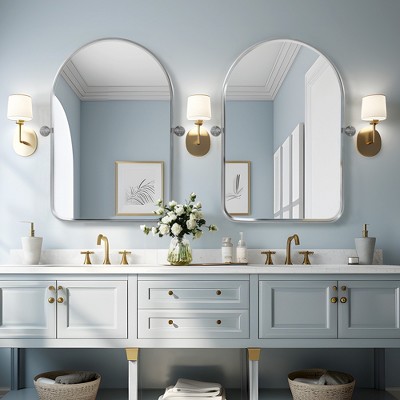 Dovelina Arch Metal Framed Bathroom Vanity Pivot Mirror Hanging Mirror Set of 2