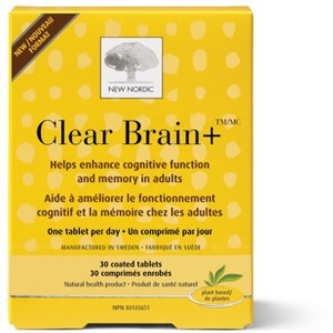 New Nordic Clear Brain Tablets - Vegan, Non-GMO Memory & Brain Health Supplement - help Concentrate -Thiamine, Walnut, Gingko & Green Tea - 30 Tablets