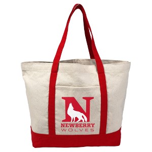Newberry College Wolves Primary Logo Canvas Tote Bag With External Pocket, Reusable Shoulder Bag for Shopping, School, Beach, Red