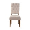 The neutral medium brown tones of the Newberry Parson Dining Side Chair contrasts the earthy tones while the distressed salvaged wood legs tie the entire Newberry dining set together. The perfectly curved back with button-tuft details makes a statement and provides comfort. Using sustainable wood resources, the chairs are constructed with Acacia wood frames.