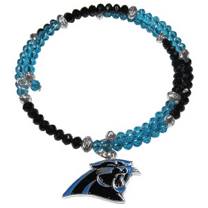 This officially licensed Crystal Bracelet is the perfect way to support your NFL team in style! Featuring the team logo in fully cast metal, this bracelet alternates team color beads with silvertoned metal football accent beads for a designer look with an NFL twist. This team bracelet wraps a full four hundred degrees and expands to fit over almost any wrist. The memory wire core springs back for a snug fit, so now matter how you show your team spirit this bracelet won't slip off!