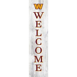 Looking to boost your team's morale? Look no further than our 48in Welcome Leaner. Featuring your team's logo and "Welcome" in your team's colors, this stylish piece is set against a white distressed wood design. Elevate your team loyalty and show off your spirit with this perfect accent piece for any space.