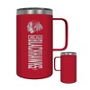Behold The Hustle—an 18oz vacuum-insulated travel mug made for the caffeine-fueled champions among us. Outfitted with a mighty handle fit for a quarterback’s grip and a spill-resistant lid that laughs in the face of potholes, it’s your trusty sidekick for morning madness or game-day glory. Featuring laser-etched team graphics that won’t fade (even if your team’s playoff hopes do), it’s the ultimate way to sip your joe like a pro—on the go, in the stands, or anywhere the hustle takes you.