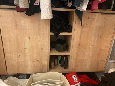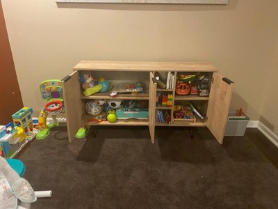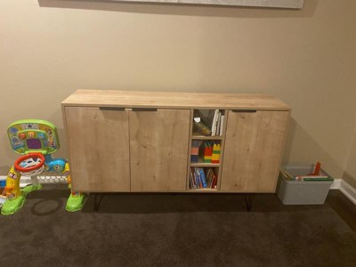 [This review was collected as part of a promotion.] My family and I are getting ready for a move, so we haven’t had the chance to put this cabinet together yet. However, it looks very aesthetically pleasing. The light oak color makes light bounce, and the room feels bigger. I can picture this as a TV stand, and it will help tie the room together.