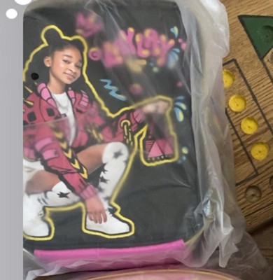 This is such a fun spunky lunchbox, featuring Lay Lay and bold hot pink, yellow, and light blue accents! The handle is padded, the back has a name tag, the sides have a cute themed design, and the interior is a easy to wipe clean material.