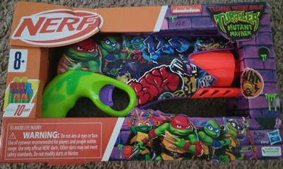 [This review was collected as part of a promotion.] I have 8 and 11 year old boys that love Ninja Turtles and Nerf. We have had many Nerf guns over the years, and this one not one looks the coolest, but the darts come with specific turtle colors so you can keep track of them easier. The gun itself is easy to use and a lot or fun. The darts shoot pretty hard, and the aim was right on, so we had a lot of fun with this. A great gift idea!