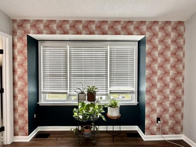 A full roll of this product is 20.5 inches wide and 216 inches long. A full roll can cover up to 30.75 square feet depending on the design match and pattern repeat. A sample of this product is 8 inches by 11 inches. Fluted Geo Clay is funky and fun! It is the perfect combination of contemporary and retro, with its washed linen style background in clay red and overlaying asymmetrical design in beige toned cream. This matte finish wallpaper adds uniqueness and intrigue with its illusionary features, making it the perfect choice for those wanting something bold but still modest.