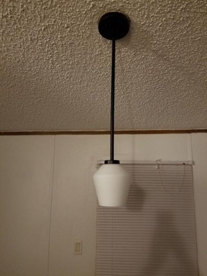 [This review was collected as part of a promotion.] I recently received the Nielson 1-Light Matte Black Mini Pendant Light from Influenster and I absolutely LOVE it!! The clean lines and matte black finish perfectly match my kitchen's style! Installation was super easy. The instructions were clear, and all the necessary hardware was included. Adjusting the height was simple, and it even worked well with my sloped ceiling. This light not only looks great, but is also very practical. The diffused light from the opal glass is perfect for the kitchen sink area.. Plus, it's durable and dimmable, adding to its versatility. Overall, the Nielson pendant light is a stylish and functional addition to my kitchen. Highly recommend it!