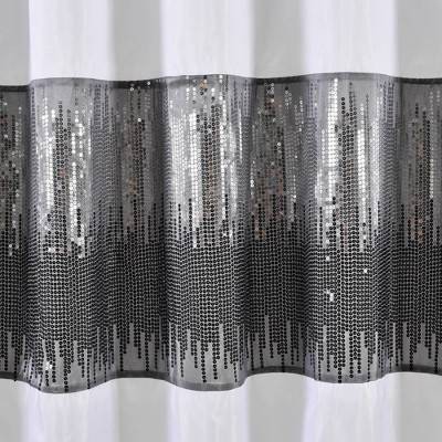 Modernize the look of your bathroom with this stunning Night Sky Shower Curtain which features two tone sequins and luxurious faux silk fabric in a color block design. This shower curtain is sure to add the glamorous look you are going for in your chic primary bathroom or guest bathroom. This shiny, shimmery shower curtain is ideal for those who want to create a chic and luxurious look in their bathroom. The shower curtain measures 72" W x 72" L, so it will fit just about any bathtub. The 12 button holes at the top make this shower curtain easy to hang with hooks or rings, not included, ensuring a hassle-free installation process. Its fashionable style will create a stunning look for your bathroom makeover. Due to being a fabric shower curtain, we do recommend using a shower curtain liner, sold separately. To maintain the delicate nature of the sequin detail, we recommend gently hand washing in cold water and hang drying our Night Sky Shower Curtain. If needed, use a steamer to remove wrinkles or a non-chlorine bleach for cleaning. Please refer to the product label for full care instructions.