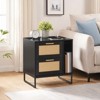 - Farmhouse Style: The simple black square table is complemented by gold drawer handles and rattan-decorated drawer fronts, infusing the space with natural charm. It seamlessly blends into bedrooms or living rooms, enhancing the elegance of your home