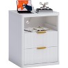 - Stylish and practical design: Grooved drawer fronts and gold handles blend modern aesthetics with functionality. The combination of drawers and open shelves provides ample storage for books, electronics, and bedside essentials.