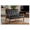 Nikko Mid-Century Modern Scandinavian Style Faux Leather Wooden 2 Seater Loveseat Black - Baxton Studio: Rubberwood Frame